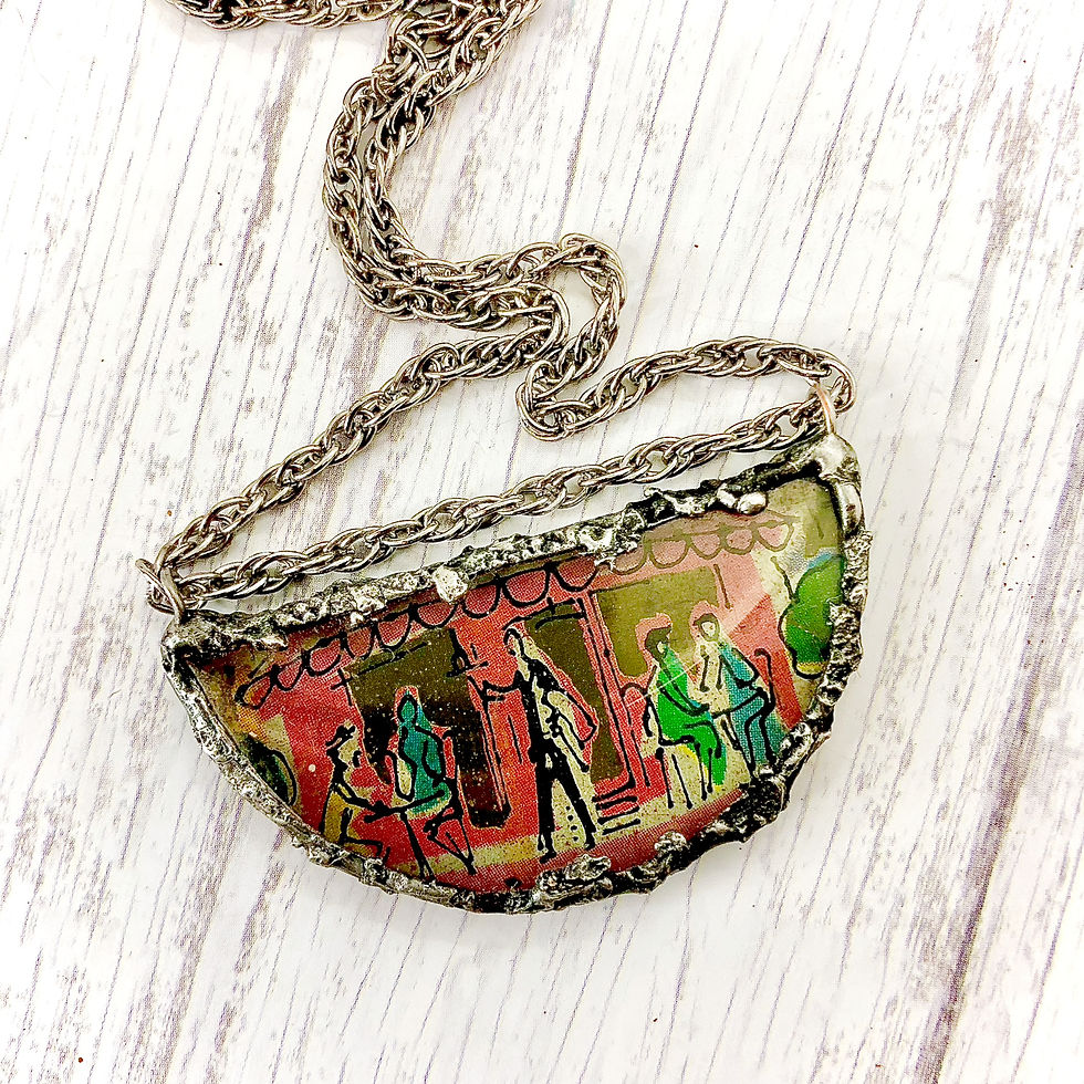 Half Circle Glass and Tin Necklace - Street Cafe